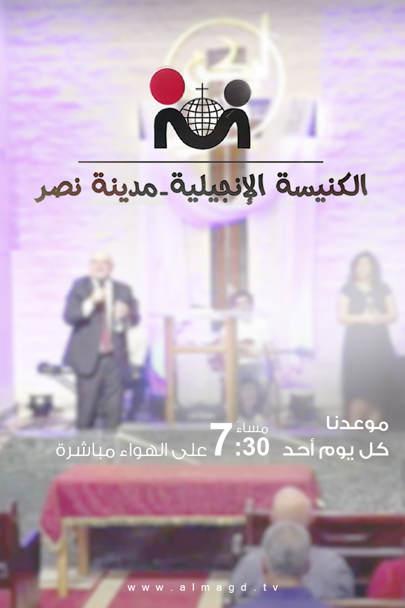 تنقل لكم قناة المجد على الهواء مباشرة كل يوم أحد الإجتماع العام للكنيسة الإنجيلية بمدينة نصر وذلك في تمام السابعة والنصف مساءً بتوقيت القاهرة.